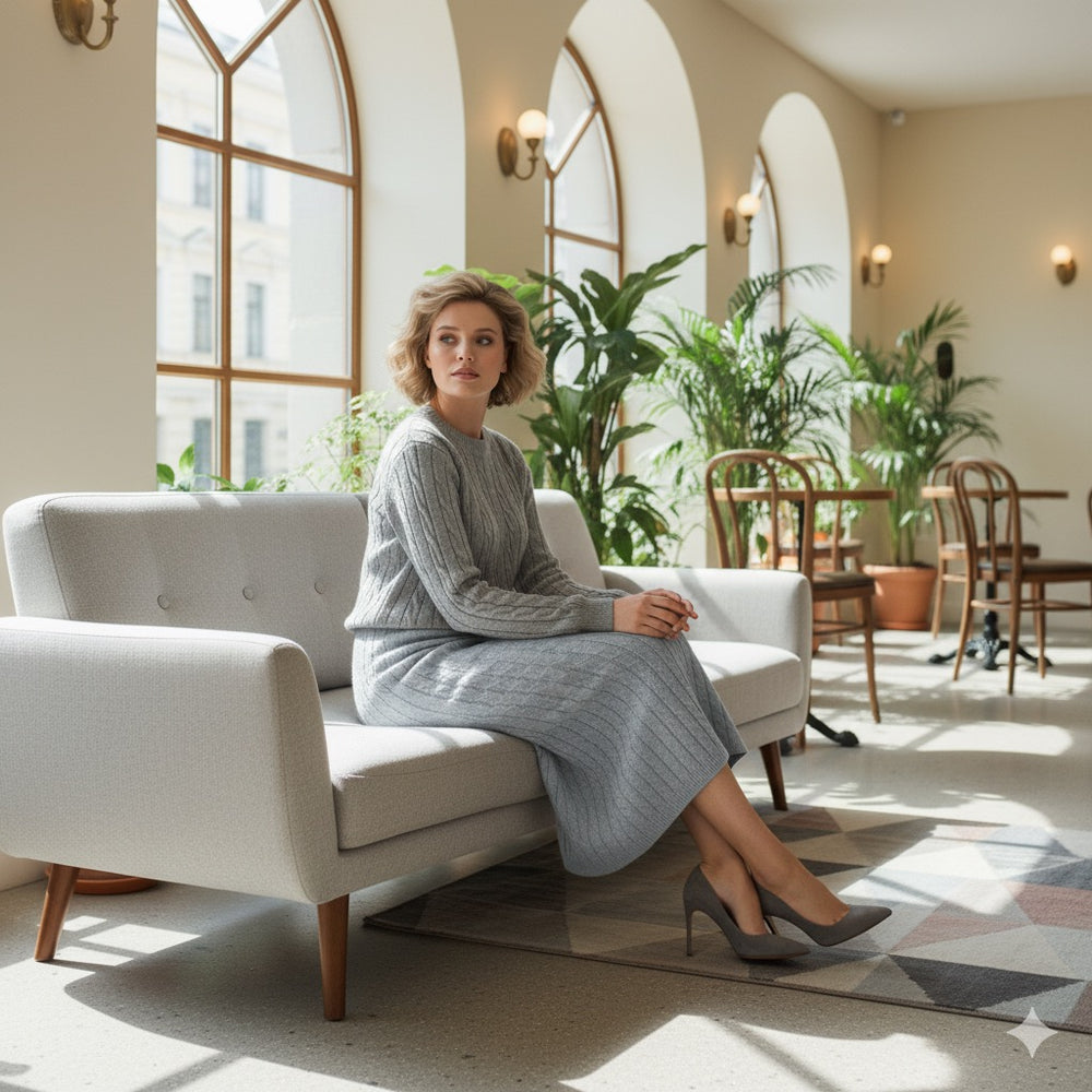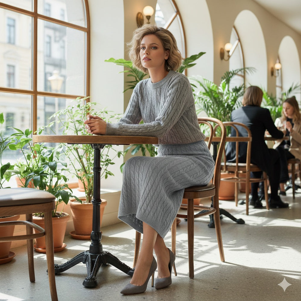 The ADL Soft Cable Jumper and Midi Skirt Co-Ord Set offers timeless elegance with a modern twist. Crafted from soft cable knit fabric, the jumper provides warmth and a refined texture, while the coordinating midi skirt flatters your silhouette with a graceful length. This sophisticated ensemble effortlessly transitions from casual moments to polished occasions, making it a versatile addition to your wardrobe. Perfect for layering or wearing solo, it blends comfort with understated style for an elevated everyday look.